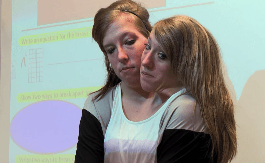 This episode contains a rare look at abby and brittany hensel, dicephalus conjoined twins, having two heads and sharing one.